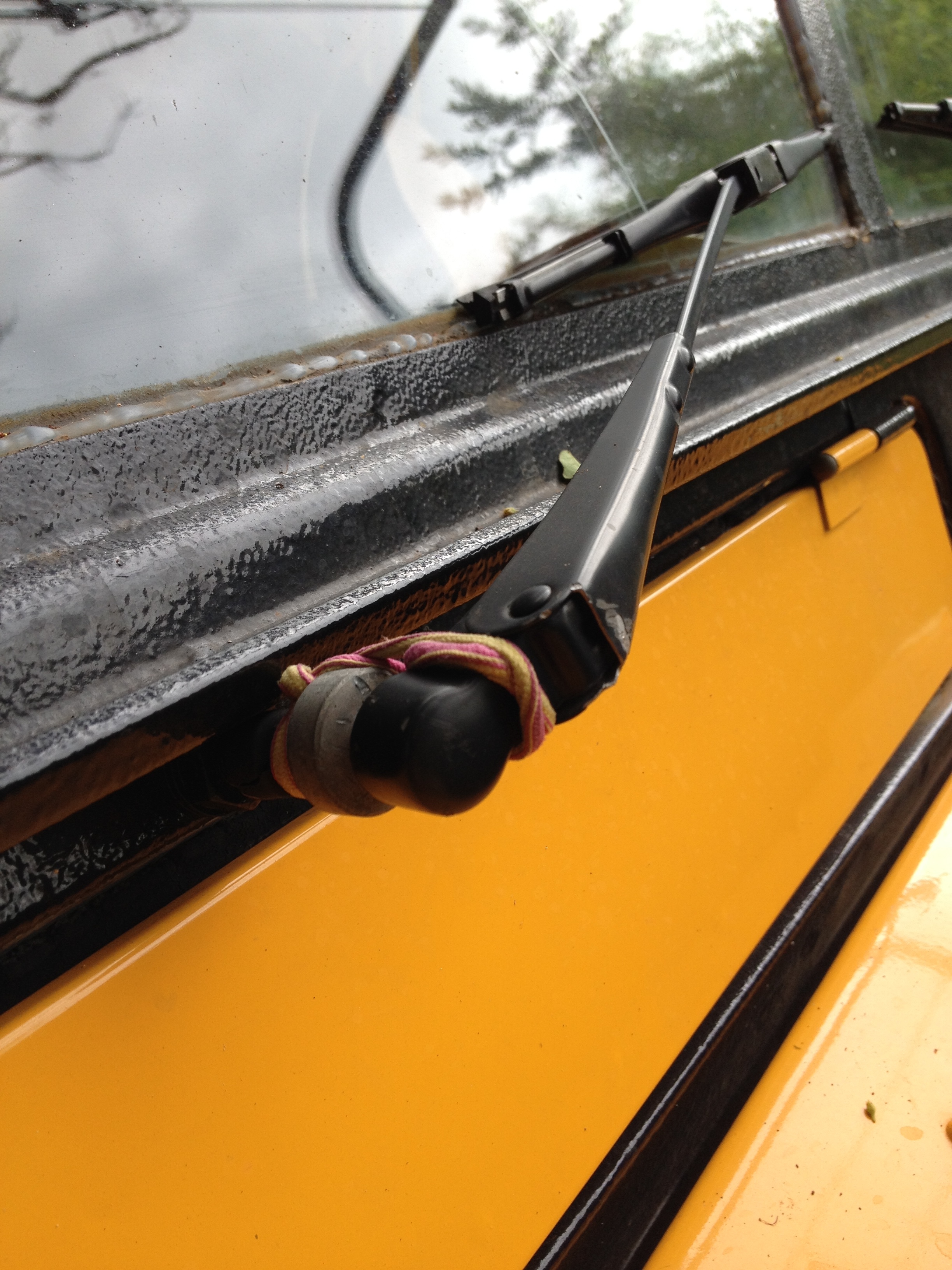 Our first major mechanical breakdown since the campsite alternator replacement in Blyde River Canyon occurred on our way to the Swaziland border in the middle of a Mozambican rainy season downpour when our drivers side windscreen wiper was gripped by the wind, ripped off the splinned shaft and thrown onto the roadway losing the retainer clip that had worked it’s way loose. Tamaira (Overland MacGyver Apprentice) was quick to offer a fix – a pink hair tie. Fantastic bandaid repair. Crisis averted.
